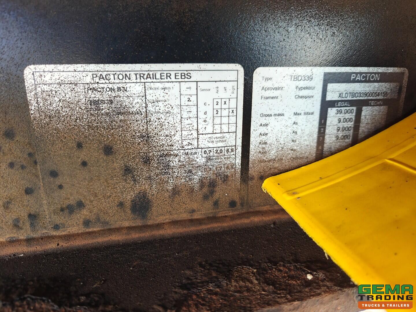 Pacton TBD339 SchuifZeilen/Schuifdak - HH vloer - Achtersluit Laadklep3000KG - StuurAs (Tridec) - BPW Assen Trommel - 02/2027 APK