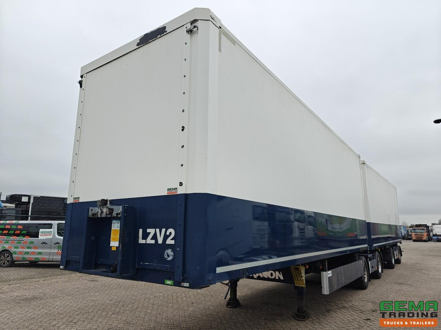 Tracon Trailers TB1218 LZV Combi - MEGA - GeslotenOpbouw 8.2 + 8.2 - StuurAssen - HH Vloer - LZV dolly - LuchtbediendeSchuifbak